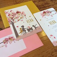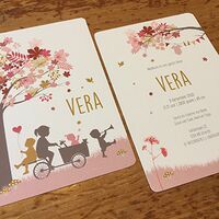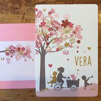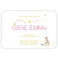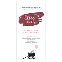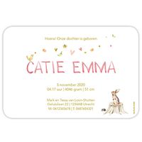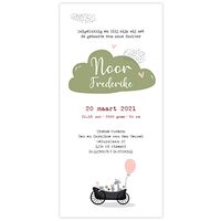 geboortekaartje enkele kaart illustratie giraffe op fiets meisje