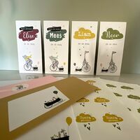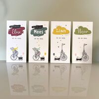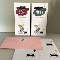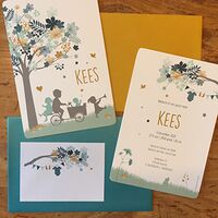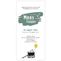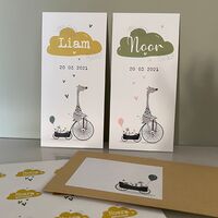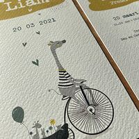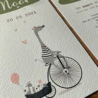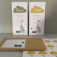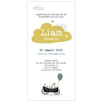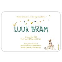 geboortekaartje jongen illustratie giraffe op fiets met knuffels