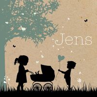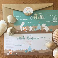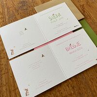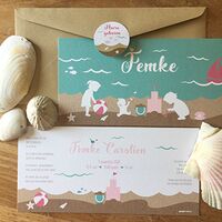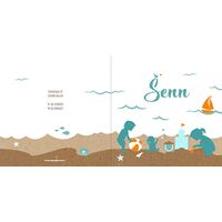 geboortekaartje liggend strand silhouetjes broertje zusje zee boot