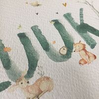 Geboortekaartje aquarel lente zomer bosdieren meisje