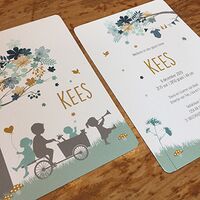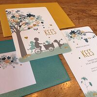 geboortekaartje strand silhouetjes zee boot broertje zusje