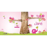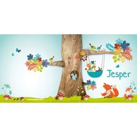 Geboortekaartje dochter boom vrolijk dieren boertje zusje