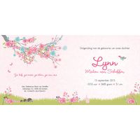 Geboortekaartje bloesem meisje vogeltjes silhouet