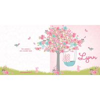 Geboortekaartje dochter zusje boom vogeltjes wiegje