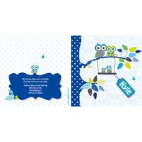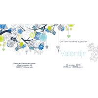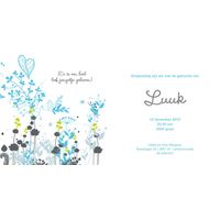 Geboortekaartje illustratief vlinders uilen oceaanblauw