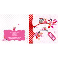 Geboortekaartje meisje uiltjes hartjes fuchsia