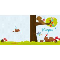 Geboortekaartje eekhoorntjes bos paddenstoel jongen