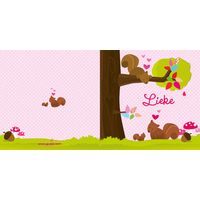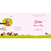 Geboortekaartje eekhoorntjes bos paddenstoel meisje