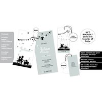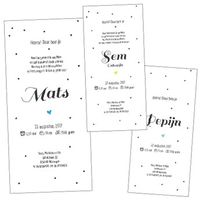 Hip geboortekaartje jongen zwarte stipjes silhouetjes structuurpapier