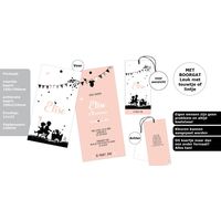 Geboortekaartje meisje label bakfiets silhouetjes derde kindje zwart/wit