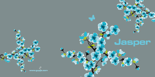 Wat een prachtige blauwe bloesem op dit geboortekaartje. De takken met bloesem groeien mooi om de naam van jullie kindje. Door de wat donkergrijze achtergrond steken de blauwe bloemetjes mooi af en wordt dit kaartje iets stoerder dan de meisjesvariant.