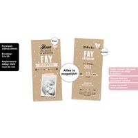 Oooohw wat een lieve vosjes. Mooi strak typografisch ingestoken enkele kaart. Mooi op kartonlook met warm oranje en witte kleuren. Indien gewenst kan er op de achterkant ook tekst. Dit geboortekaartje wordt gedrukt op prachtig stevig structuurpapier en afgewerkt ronde hoeken.