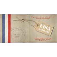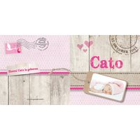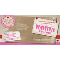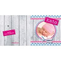 Geboortekaartje meisje met babyfoto linnen steigerhout