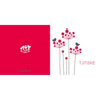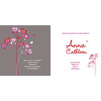 Geboortekaartje strak vogeltjes bloem rood