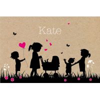 Geboortekaartje dochter vijfde kind karton silhouetjes