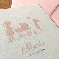 Geboortekaartje karton dochter rompertje sokjes kinderwagen