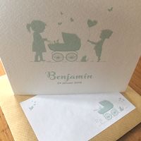 Geboortekaartje karton zoon rompertje sokjes kinderwagen