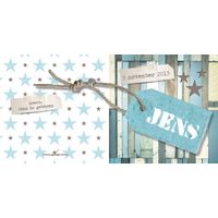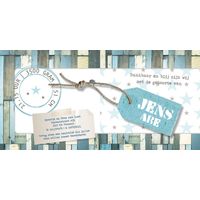 Geboortekaartje zoon label blauw gekleurd steigerhout