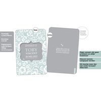 Geboortekaartje hout label babyblauw stempels