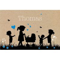 Geboortekaartje zoon vijfde kind karton silhouetjes