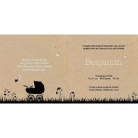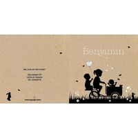 Geboortekaartje zoon bakfiets silhouetjes karton zwart/wit