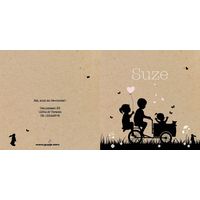 Geboortekaartje dochter bakfiets silhouetjes karton zwart/wit