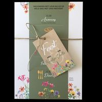 Icoontjes en illustraties kunnen gratis naar wens worden aangepast! Leuk met bijpassend adresetiket en sluitsticker erbij.