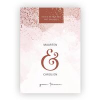 De trouwkaarten van Gupje kunnen altijd naar wens worden aangepast! Alles is mogelijk bij Gupje en eigen wensen zijn gratis. Tijdens het bestellen kunnen eigen wensen worden ingevuld (mailen mag ook!). Gupje maakt jullie kaartje(s) binnen 3-5 werkdagen en mailt het ontwerp naar jullie. Correcties kunnen dan altijd nog en zijn gratis. Net zolang totdat alles naar wens is!