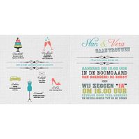 De trouwkaarten van Gupje kunnen altijd naar wens worden aangepast! Alles is mogelijk bij Gupje en eigen wensen zijn gratis. Tijdens het bestellen kunnen eigen wensen worden ingevuld (mailen mag ook!). Gupje maakt jullie kaartje(s) binnen 3-5 werkdagen en mailt het ontwerp naar jullie. Correcties kunnen dan altijd nog en zijn gratis. Net zolang totdat alles naar wens is!